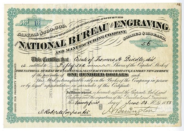 New JerseyÉ.. 56 Shrs Stock Certificate. Low Serial # 16. Very Fine.
