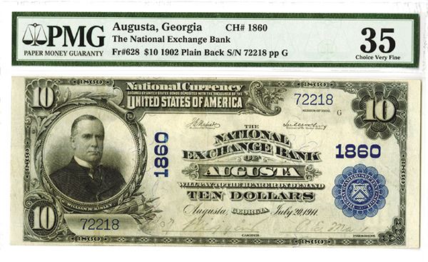 Augusta, Georgia. Series of 1902, PMG graded Choice Very Fine 35, S/N 72218 pp G.