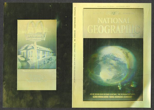 ABNC. Golden National Geographic Cover featuring the earth and a McDonald's advertisement. As made. Over 200 pieces.