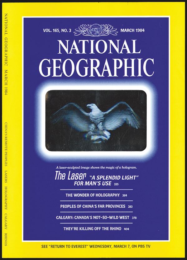 National Geographic Magazine, March 1984 issue. Press sheet cover and spine of the issue with ABNC eagle hologram. As made.