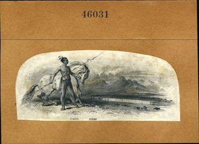 "Progress of Civilization". ca.1840's-1850's. 7 different vignettes of Native Americans viewing trains, ships and large cities from afar. The vignettes are 3 by 5 inches in size. All are printed on india paper and mounted to manila file cards. Printers include TCC (5) and 2 un-attributed. Condition ranges from VG (2 have small internal tear and light foxing or glue stains) to choice uncirculated condition. Please inspect. Rare Native American vignettes. TCC.