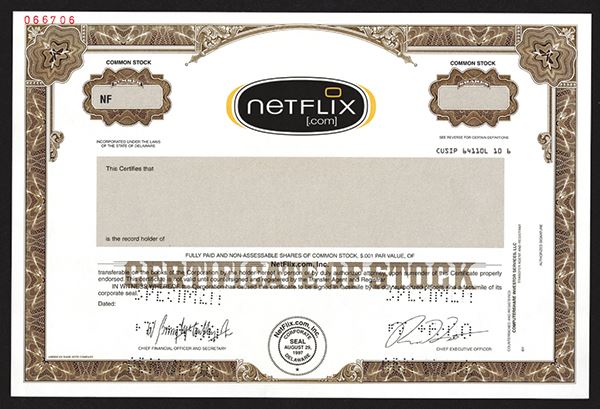 DE. Odd Shares, Common Stock, Black on brown and yellow, rare early incarnation of this amazing company and very possibly the IPO certificate design. ABNC.