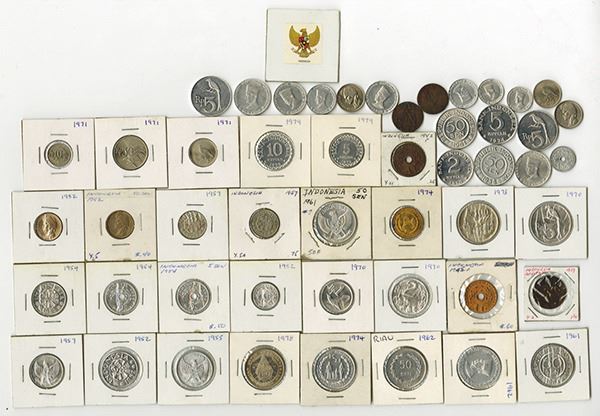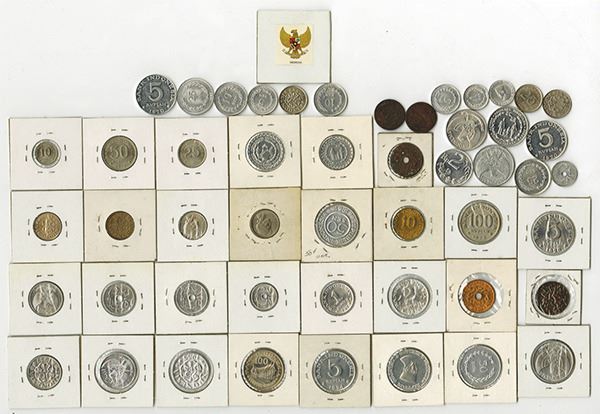 Indonesia. Netherlands Indies (3, copper VF or better); VOC 1790, 1793. Fine Indonesia. 1-50 Sen, 1-100 Rupiah (35). Mostly Uncirculated; Irian Barat (4) and Riau Archipelago (5) Mostly Uncirculated. 44 Pieces.
