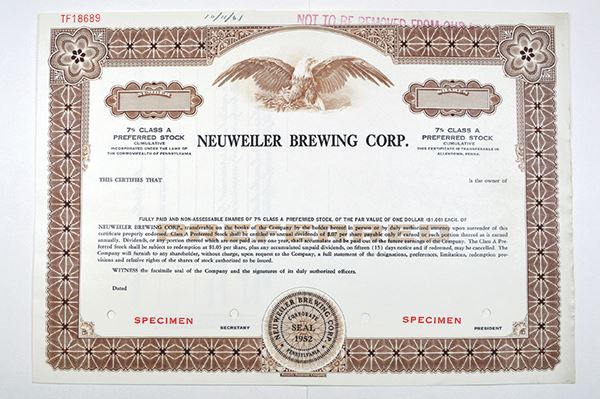 Pennsylvania. -Odd Shrs Stock Certificate. Specimen. Security BNC. Extremely Fine.