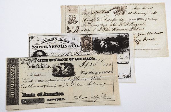 Louisiana. On the Banking House of Smith, Newman & Co, Citizens' Bank of Louisiana, Bank of America and a New Orleans company. 3 pieces. Attractive trio.