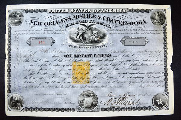 Texas. 50 Shrs Stock Certificate. Issued. Bold undeprint and printed revenue stamp. Slight paper loss at right end at fold., left end with a curl. Numerous pinholes at left. National BNC. Fine +.