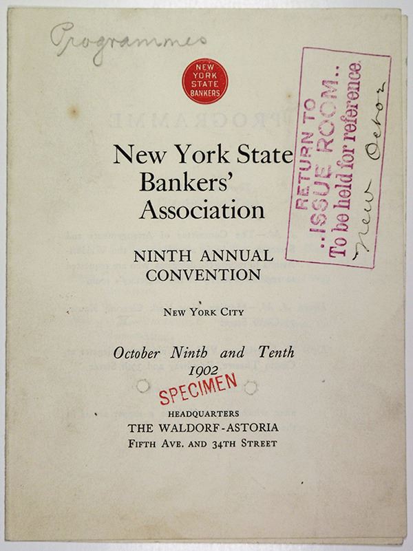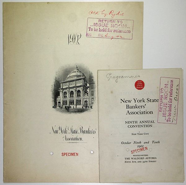 NY. 1902, Specimen New York Bankers Association 1902 Specimen Invitation and Program for Meeting. XF-AU. ABNC.