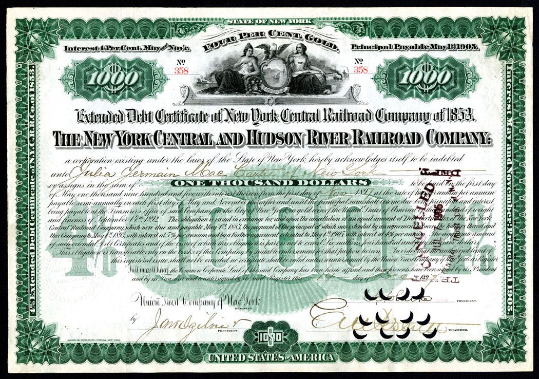 New York, $1000, 4% Gold Bond, S/N 358, ABNC. VF.