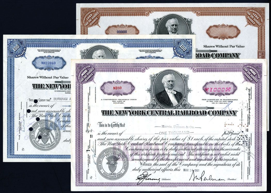 New York, Lot of 3 stocks, 1 a specimen. Various Shares, VF. ABNC.