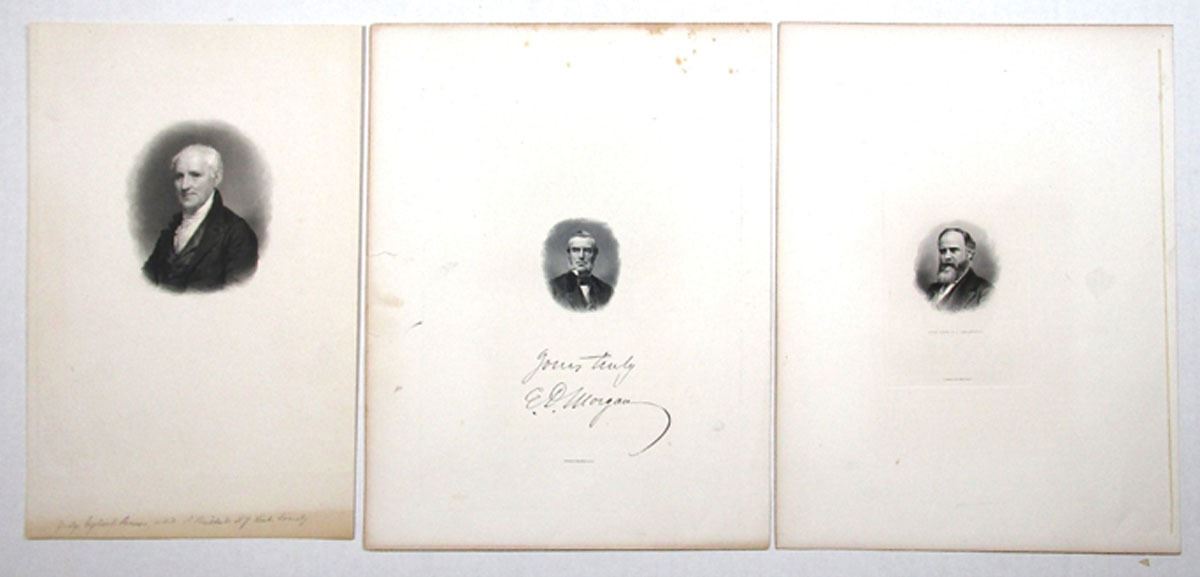New York & Maryland, ND (ca.1850-1900). Lot of 3 Proof Vignettes, Includes: Vignette of Judge Egbert Beson. Benson (June 21, 1746 _ August 24, 1833) was an American lawyer, jurist, and politician, who represented New York State in the Continental Congress, Annapolis Convention, and United States House of Representatives. He served as a member of the New York constitutional convention in 1788 which ratified the United States Constitution. He also served as the first attorney general of New York, chief justice of the New York Supreme Court, and as the chief United States circuit judge of the United States circuit court for the second circuit; Vignette of Edwin D. Morgan with Facsimile Signature. Morgan (February 8, 1811 _ February 14, 1883) was the 21st governor of New York from 1859 to 1862 and served in the United States Senate from 1863 to 1869. He was the first and longest-serving chairman of the Republican National Committee. He was also a Union Army general during the American Civil War. Morgan was known for his progressive views on education, prison reform, and women's suffrage. He helped to found the Republican Party in New York and was a strong supporter of the Presidency of Abraham Lincoln; Vignette of Hon. John A. J. Creswell. Creswell (November 18, 1828 _ December 23, 1891) was an American politician and abolitionist from Maryland, who served as United States Representative, United States Senator, and as Postmaster General of the United States appointed by President Ulysses S. Grant. Creswell is considered to be one of the ablest, if not the best, Postmaster General in United States history. Creswell modernized the U.S. Postal system to adapt to an expanding demand for increased postal routes throughout the Western states and remain competitive worldwide. Creswell also integrated the U.S. Postal system appointing both male and female African American postmasters throughout the United States, giving them significant positions of federal authority. Sweeping and constructive reforms of the U.S. Postal system took place during Creswell's tenure, including securing fair competition among Star Route carriages, and the abolishment of the franking system. Creswell developed a codified classification system of offenses against postal laws. Creswell streamlined and reduced postal costs making the United States Postal System run efficiently creating a fair pricing system domestically, and reducing international mailing prices. Creswell developed and implemented the United States first penny postcard. Printed by NBNC. (3).