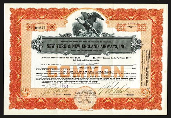 25 Shares, I/U, Black on orange, Screaming eagle, VF, Hamilton BNC. Scarce.