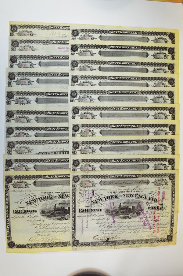 MA. Lot of Stock of Odd Shrs (18) and 100 Shrs (2). I/C. ABNC. VF or so. Group of 20 pieces.