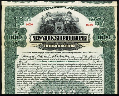 New York, 1916, $1000, 1st Mortgage 30 Year 5% Sinking Fund Gold Specimen Bond, Black on green border and underprint, Company logo top center flanked by two allegorical women, POC's, VF-XF condition, ABNC.