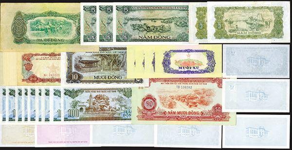 Viet Nam, South. Central Committee of the National Front for the Liberation of South Viet Nam. 10, 50 Dong R7, R8; North Viet Nam Military issues (7); Viet Nam post war: (26). Mostly Fine or better, many Uncirculated. 35 pieces.