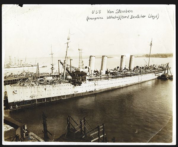 Germany. WWI prize renamed USS Von Steuben. 8x10 photo. Slight bends at edges, a bit of paper loss at top, Inked identification at top.