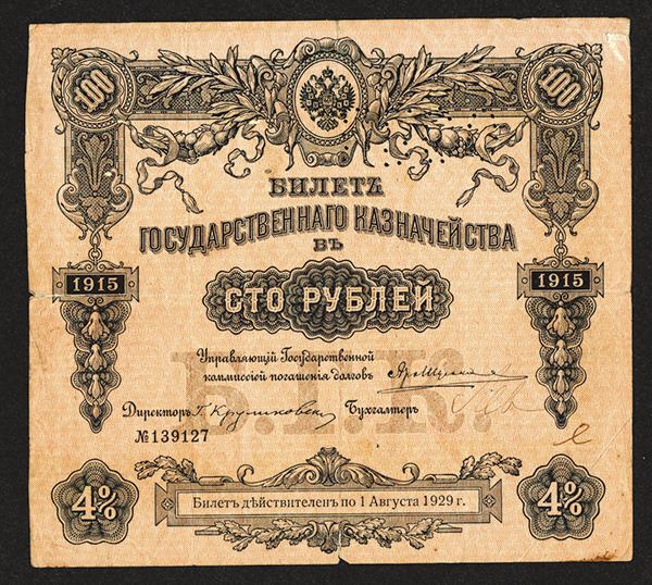 Russia, 100 Rubles, P-S175,Perforation on P-58, Dark blue on light brick red. VG with small spitting and stains on back.