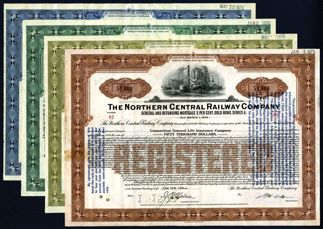 Northern Central Railway Co., 1934, 1970, 1970, and 1972 bond group.