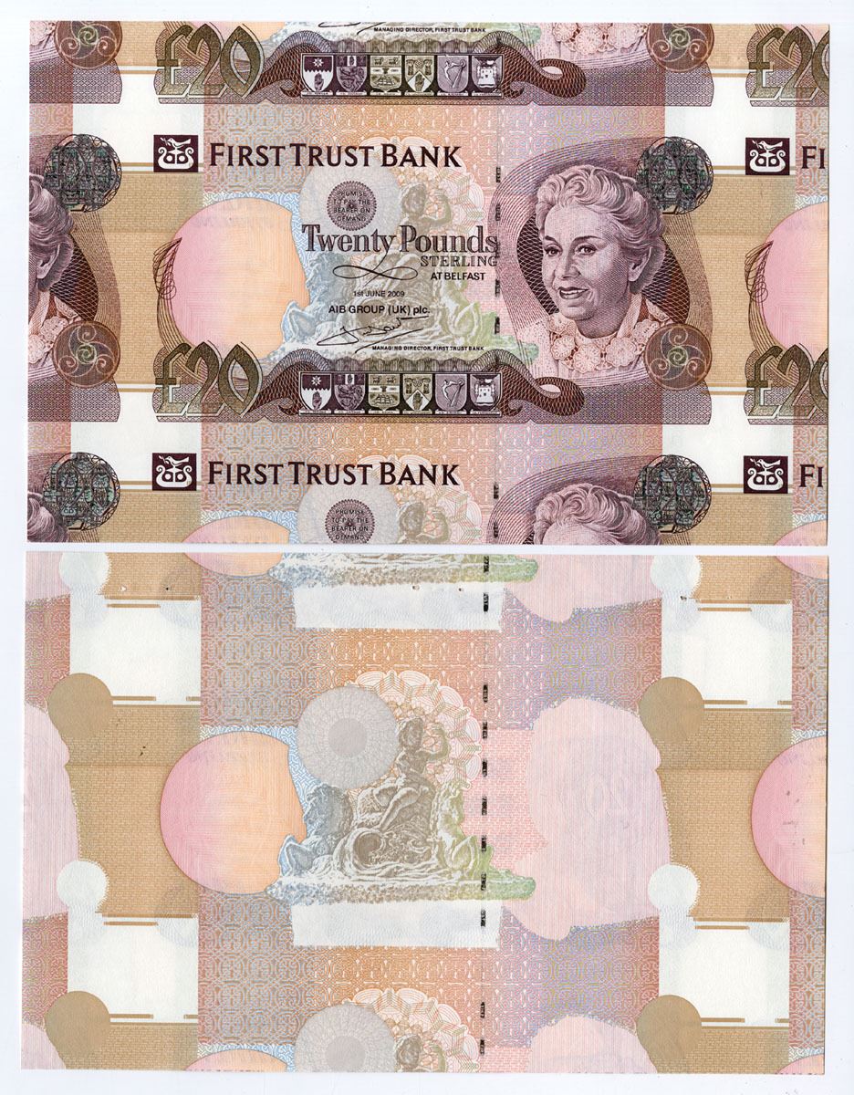 Northern Ireland, June 1, 2009. 20 Pounds, P-137sp, Pair of Specimen Proof Banknotes, Includes fully printed note on front and back without signatures or serial numbers, and a second with an underprint only of the face and a fully printed back. Both with extra large margins. Both are in UNC to CU condition. TDLR. (2). Sold "AS IS" no returns accepted.