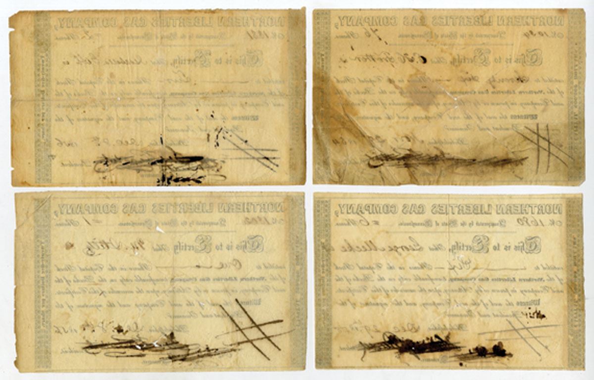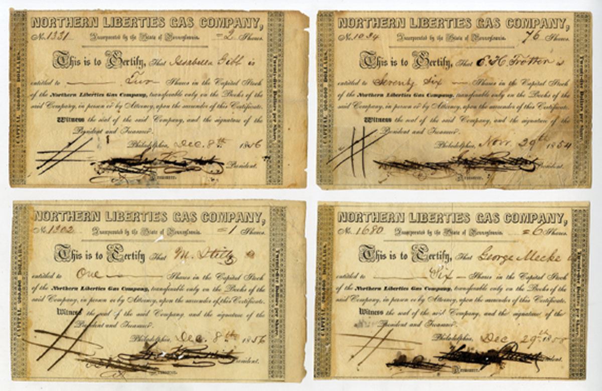 Pennsylvania, 1854-58. Lot of 4 I/C Stock Certificates for Various Share Amounts, All have title at top and are cut cancelled at center, Good to Fine condition with damage to margins and minor toning. (4). Sold "AS IS" no returns accepted.