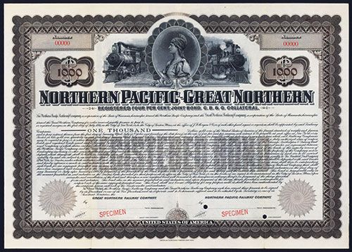 Minnesota and Wisconsin, 19xx, $1000, 4% Joint Bond, Black on brown border and underprint, Allegorical bust of woman top center flanked by moving locomotives, VF-XF condition, ABNC.