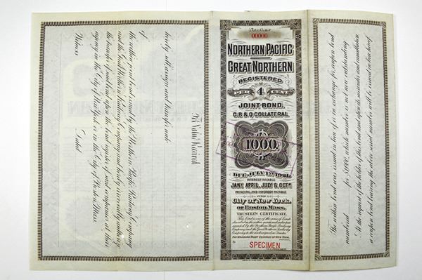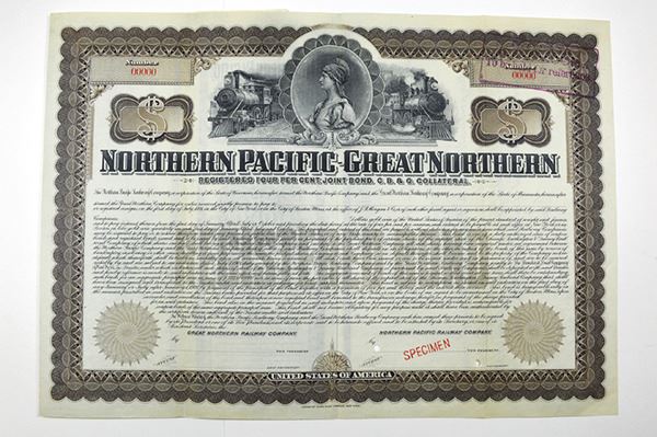 Minnesota. 19xx. Registered Four Percent Joint Bond CB & Q Collateral , Umber brown frame , Allegorical female center vignette flanked by engines, ABNC