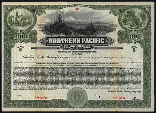 Wisconsin, 1921, $1000, 6% Series B Refunding and Improvement Mortgage Specimen Bond, Horizontal format, Black on green border and underprint, POC's, VF condition with minor folds and discoloration, ABNC. Railroad listed, bond in unlisted format in Cox.
