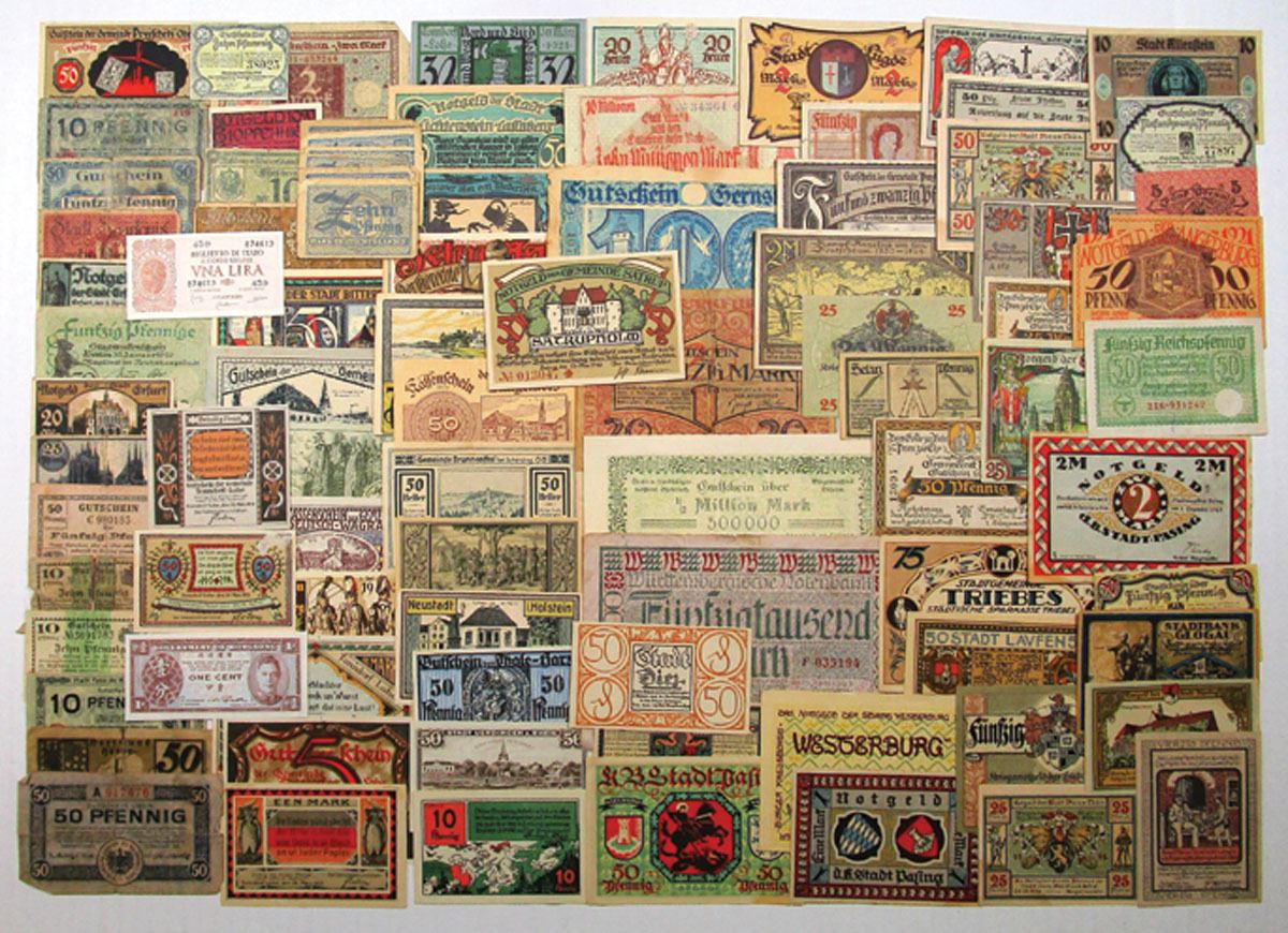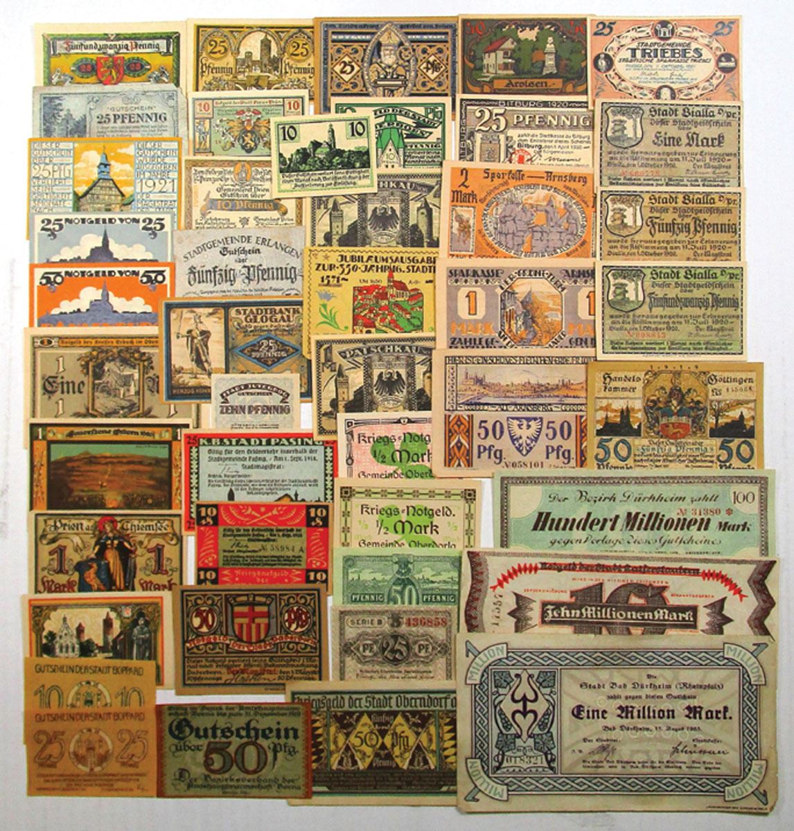 Germany, 1918-21. Lot of 130+ Colorful and Attractive Notgeld from Various Cities Including: Leipzig, Saarlouis, Hannover, Tonndorf-Lohe, Berlin, Koln, Saarbrucken, Dresden, Frankfurt, and more, including Bank Deutscher-lander group, also included are large sized Notgeld notes range from Good to CU condition. (130+). Sold "AS IS" no returns accepted.