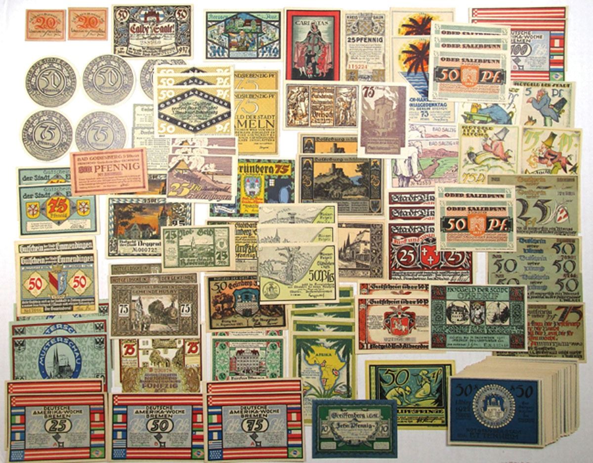 Germany….., 1918-21. Lot of 110+ Notgeld from Various Cities, Notes range from VF to AU condition. (118). Sold "AS IS" no returns accepted.