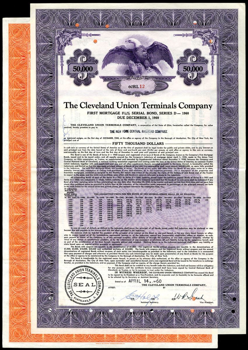 Ohio. 2 different bonds, dated 1952 and 1960. $1000, orange and $50,000 Brown. VF, FLD-ABNC. (2)