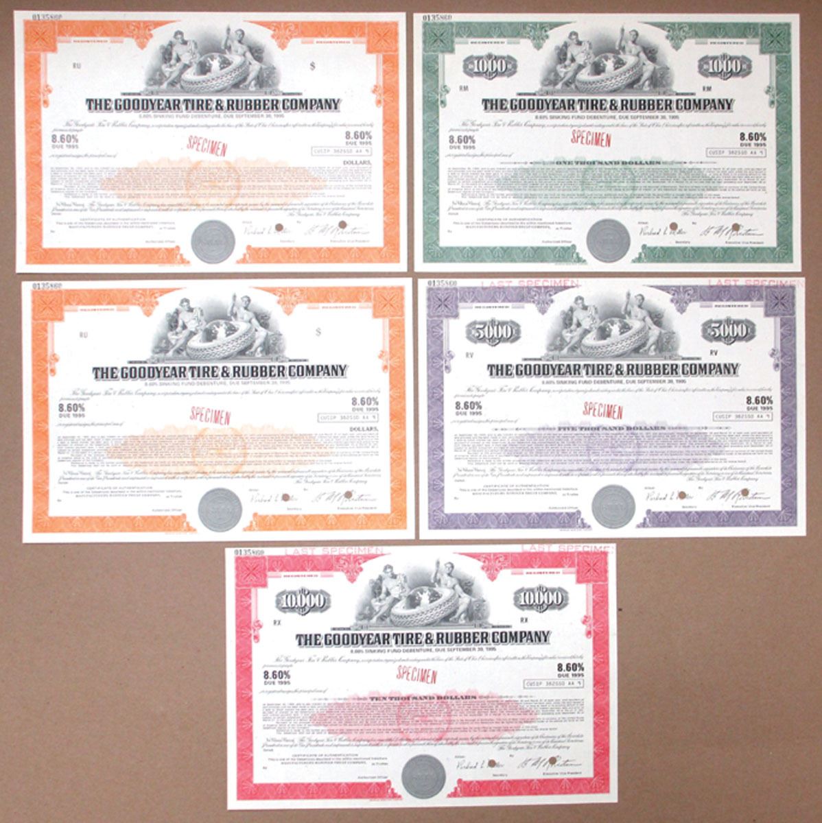 Ohio, ND (1970s). Lot of 5 Registered 8.60% Specimen Bonds, Includes: $-Odd in Orange (2), $1000 in Green, $5000 in Purple, and $10,000 in Red. All have Specimen overprints, POCs, are in UNC to Gem UNC condition, and printed by ABNC. (5). Sold "AS IS" no returns accepted.