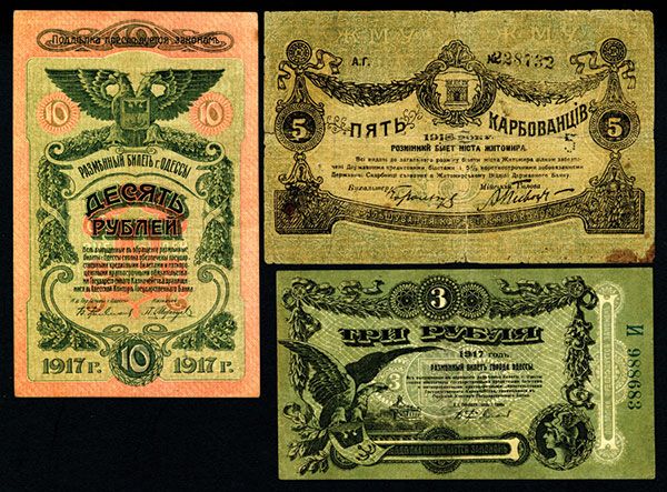 Odessa and Zhitomir Local Issues,  Issue, Trio of Issued Banknotes