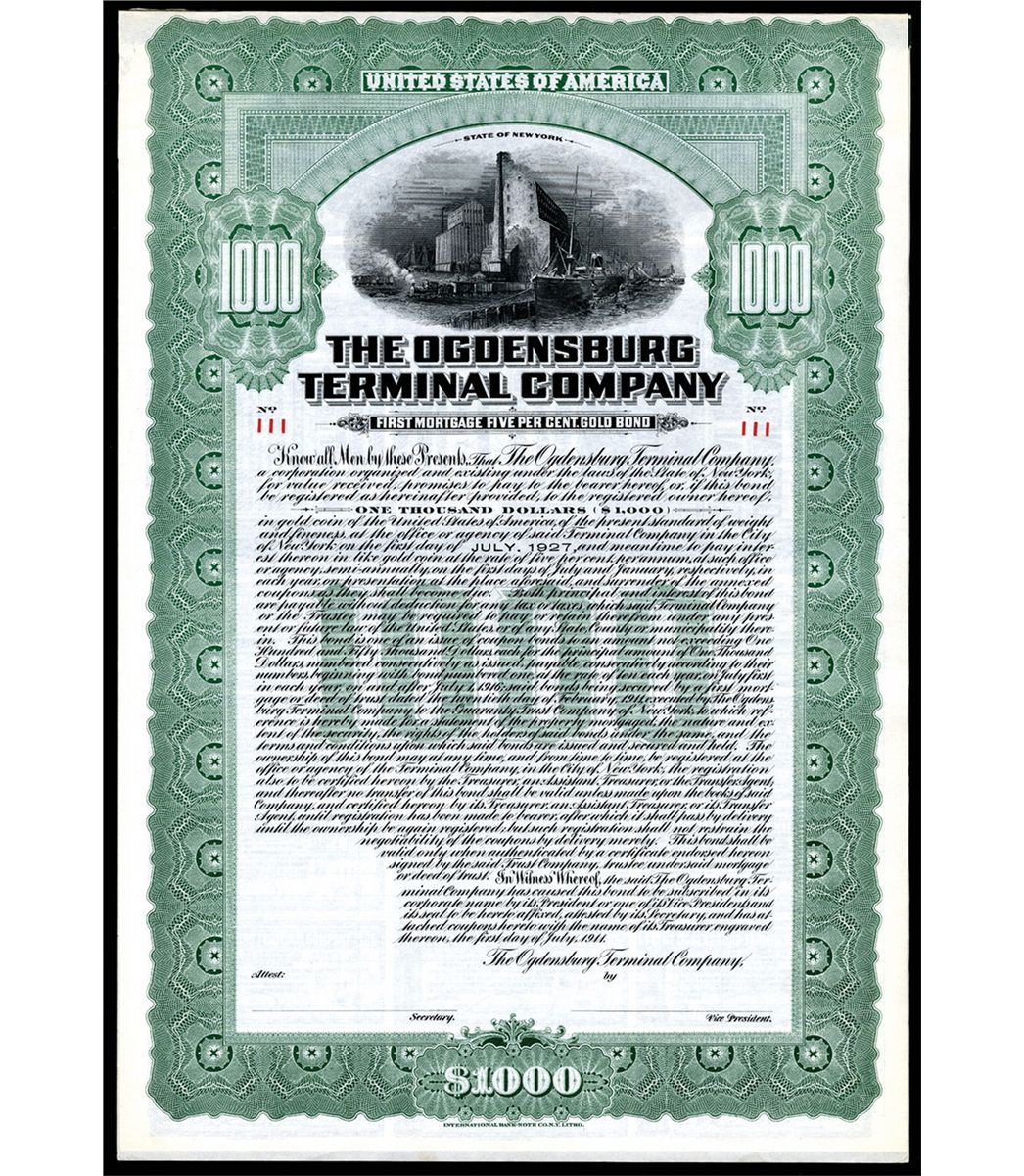 New York, $1000, 5% gold bond, IBNC. VF. Unissued