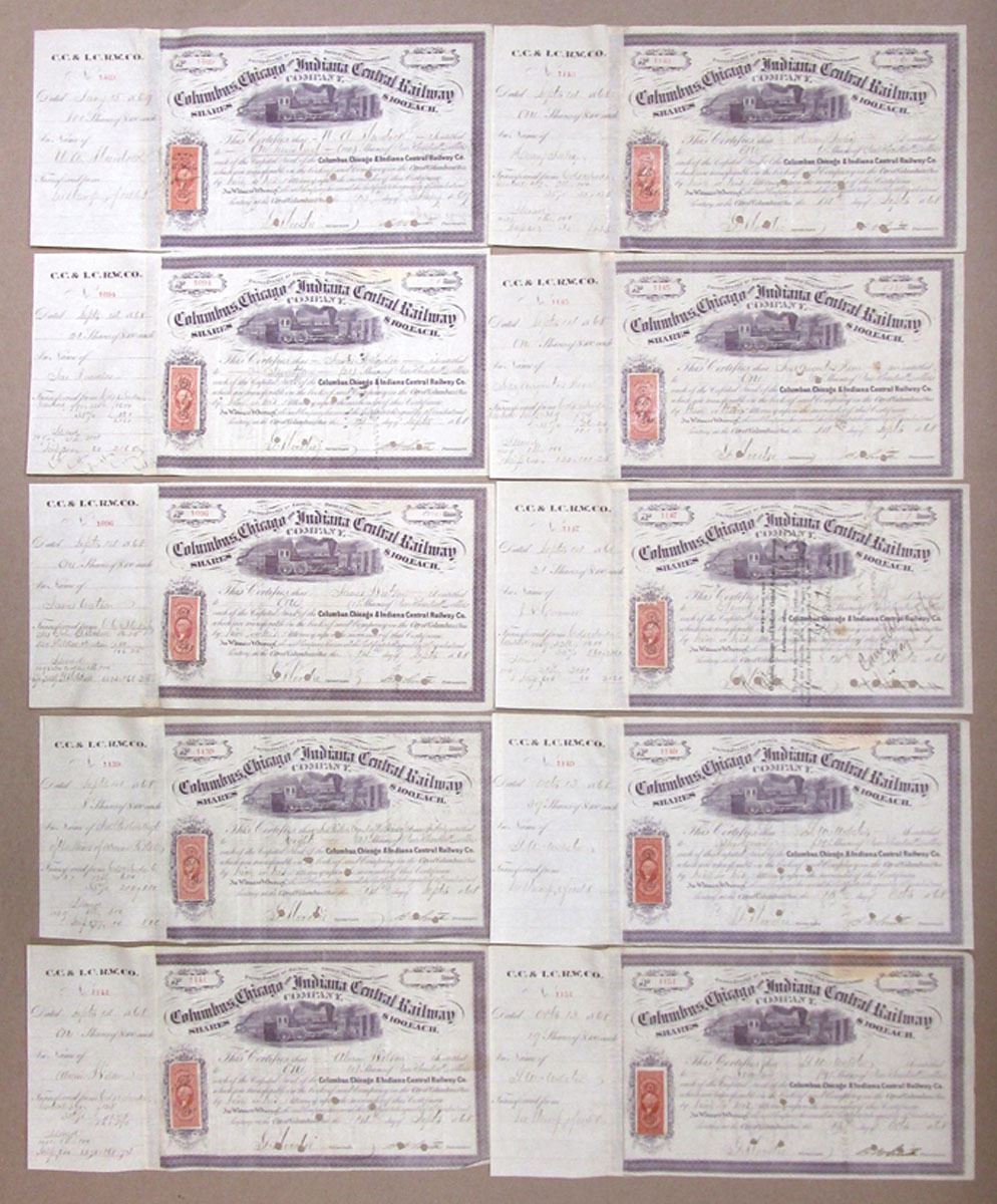 Ohio, Indiana, & Illinois. Columbus, Chicago and Indiana Central Railway Co., 1868-69, Lot of 10 I/C