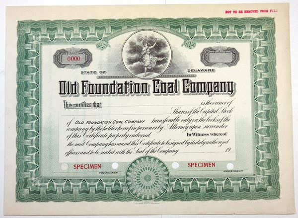 Delaware. Odd Shares Capital Stock Specimen Certificate, Black print on green border and under tint, Allegorical woman with lamp at top, Specimen overprints and POC's, VF-XF condition, SBNC.