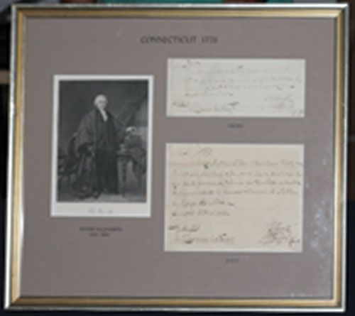 Connecticut, 1776, Oliver Ellsworth autographs on letters when Connecticut was a Colony and then when it became a State, Engraving of Ellsworth on the left, Ellsworth (1745-1807) a Yale and Princeton grad became in 1777 a representative from Connecticut for the Continental Congress. In 1787 he was, among three others, a representative of Connecticut in Philadelphia for the Constitutional Convention. Between 1789 and 1796 he was US Senator from Connecticut and from 1796-1800 he was the 3rd Chief Justice of the Supreme Court.
