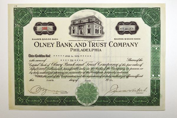 Pennsylvania. 10 Shrs Stock Certificate. I/U. E.A. Wright BNC. Very Fine +.