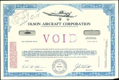 NC. 1964. Specimen. Odd shs. Common. Vignette of small single engine airplane. SCBC. VF with pencil and ink notations.
