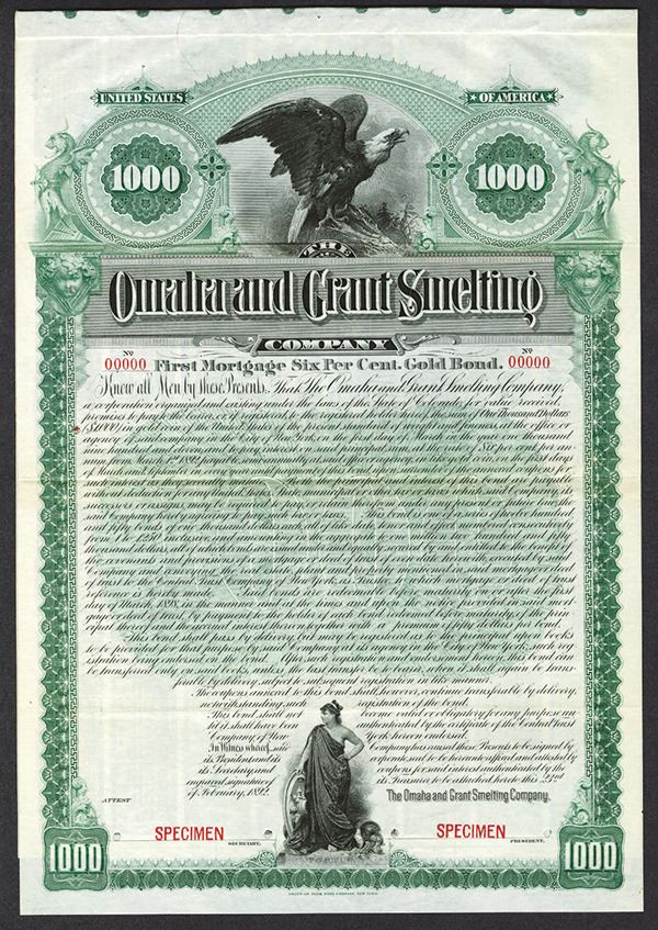 Colorado. $1000 Gold Coupon Bond Specimen. ABNC. POCs. Choice Very Fine.