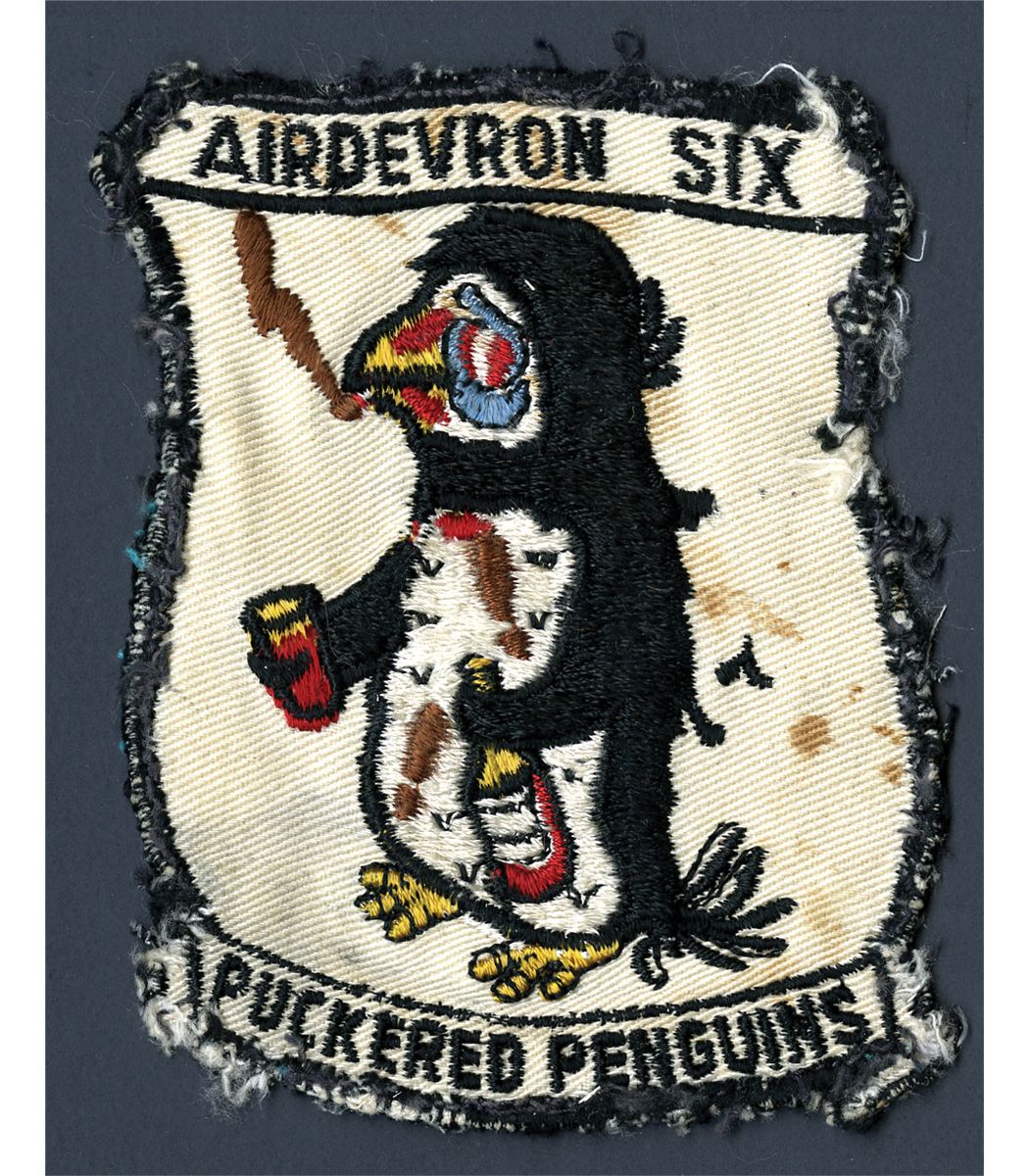 Cloth Patch, 3 x 4 inches, black, white, red, blue and yellow with image of penguin drinking booze and smoking a cigar with "Puckered Penguin" listed below and "Airdevron Six on top. Rough on the edges where removed and a few very small stains, still a historic military item. Air Development Squadron Six (VX-6 or AIRDEVRON SIX, commonly referred to by its nickname, "puckered penguins" was a United States Navy Air Development Squadron based at McMurdo Station, Antarctica. Established at Naval Air Station Patuxent River, Maryland on 17 January 1955, the squadron's mission was to conduct operations in support of Operation Deep Freeze, the operational component of the United States Antarctic Program.