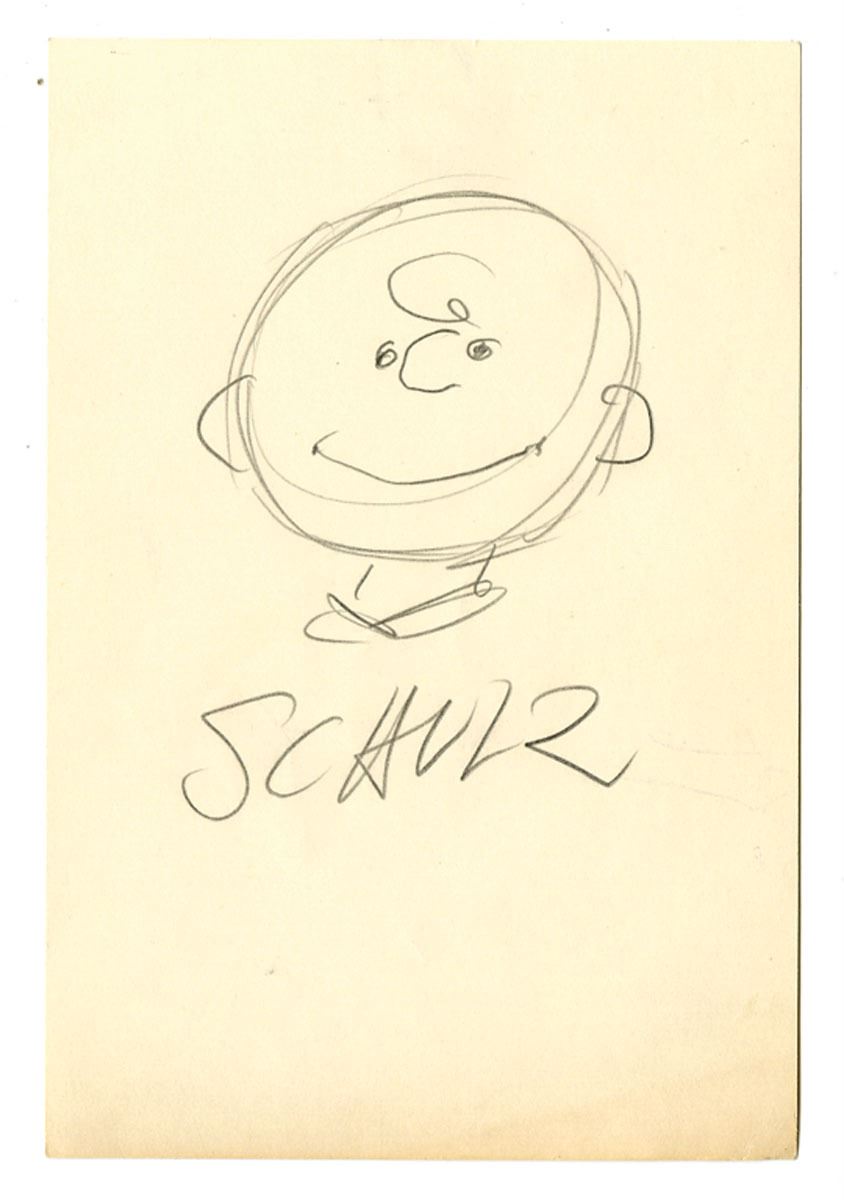 Rare and charming original drawing of Charlie Brown, created and personally signed by Charles M. Schulz, the beloved creator of the Peanuts comic strip. AU to UNC condition.