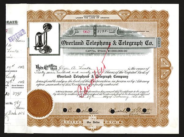 Arizona. 3798 Shrs Stock Certificate. Issued. Cancelled. POCs. Nice VF+