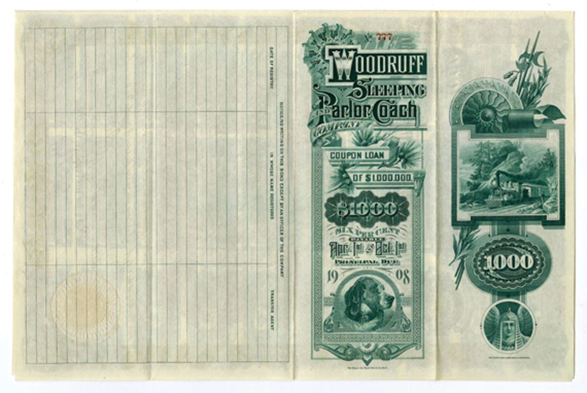 PA. Woodruff Sleeping & Parlor Coach Co., 1888 $1,000 I/U 6% Bond, VF-XF HLBNC