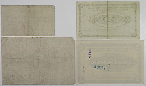 Germany. Lot of 4 Prisoner of War camp money issued for the Bereich XVIII Army Corps. Includes 5 Mark, Fine; 2 Mark, Choice Unc; 50 Pfg, VF-XF; and 1 Pfennig, Fine. (4)