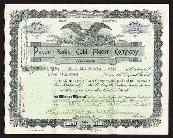 West Virginia. 500 Shares Capitol Stock, Issued and Uncanceled Certificate. Black ink with black border and green undertint. Vignette of American Bald Eagle at top center of certificate. VF, Louis Belcher Printers.