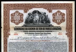 France, 1928, $1,000. 5.5% External Sinking Fund Gold Bond, Brown border w/ allegorical woman flanked by working men vignette. ABNCo. Specimen w/coupons, VF, Rare French Railroad, U.S. Dollar denominated Gold Bond.
