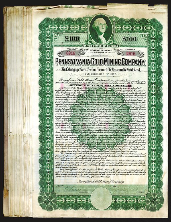 Pennsylvania. $100 Gold Coupon Bond. Issued. Uncancelled. Coupons Remain. Very Good with paper tone and stains to Very Fine. 16 pieces.