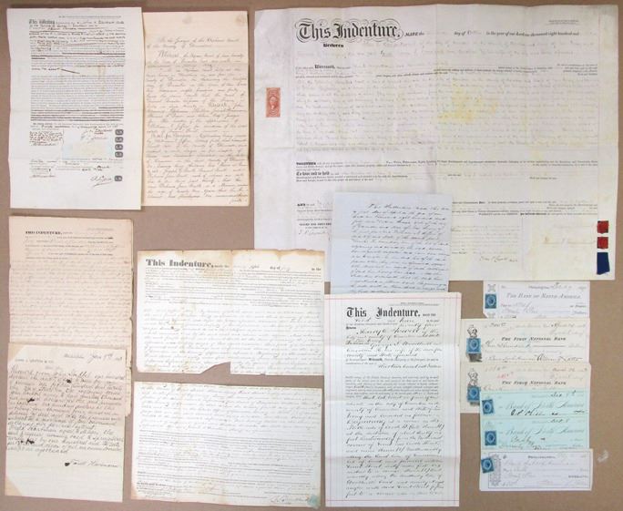 Pennsylvania, 1863-1900. Lot of Indenture and other documents, indenture has revenue stamps. Ranges from VF to XF condition. Sold "AS IS" no returns accepted.