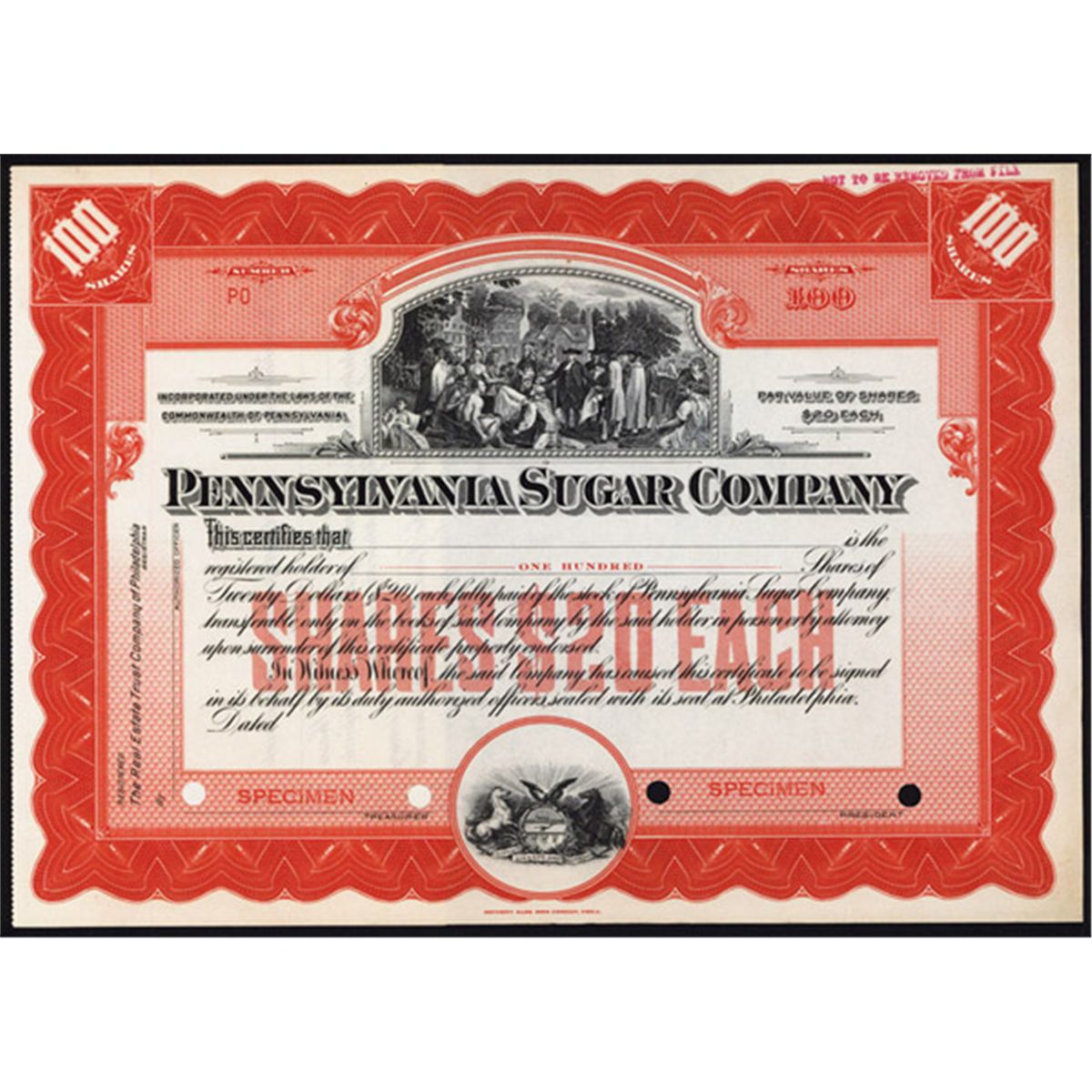 Philadelphia, Pennsylvania, ND, (ca. 1900-1920), 100 Shs., Specimen, Penn's treaty, Red, Light age toning, otherwise VF+. SBNC.