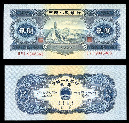 2 Yuan, P-867 (S/M#C283-10), Issued banknote, blue on light tan underprint, Block 251, S/N 9345363, PMG graded Choice About Uncirculated 58 EPQ (Exceptional Paper Quality), graded extremely conservatively with the appearance of a CU note.