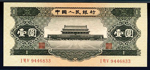 China, 1956, 1 Yuan, P-871, (S/M#C283-40), Block 165, S/N 9446833, Issued banknote, Watermark Open Star, Black on light orange and blue underprint, Great Hall at center, back, arms at center, A trophy note that is PMG graded Superb Gem Uncirculated 67 EPQ (Exceptional Paper Quality) that will be difficult if not impossible to improve upon. Bright colors, sharp corners, even margins and exceptional fresh appearance only enhance this amazing note that will be treasured by the lucky winner.
